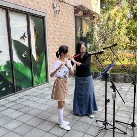 5/10 音樂會適逢母親佳節,除了這一個月孩子們學習音樂的成果展現,謝老師夜會帶來應景的曲目,演奏媽媽的眼睛,與遊子吟,樂團中幾位學習較久的學生,更會帶來篇流行的當代長笛作品,地球,以及準備比賽應試的比賽曲目,透過戶外音樂分享, 帶領孩子從合奏到個人獨奏的全新分享方式。