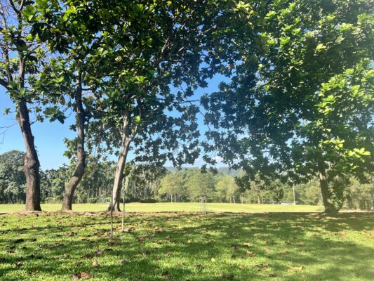 這風景應該搭配一個躺椅,早上的溫度剛好,課程安排在10:00 所以我先來KaLa KaLa一下,雖然樹梢仍是翠綠的樹葉,但是掉落一地的落葉,能讓你感受到秋意濃了!這時戴上濾鏡,就可以把樹葉變紅了!
