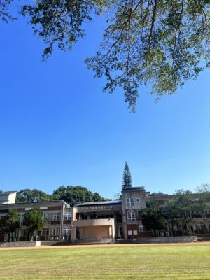 剛好也遇見主任,因此打聽了老樹搬家的原因,原本兩棵住在籃球場的大樹,因為生長越來越大,有時候會掉落樹葉,果實,造成孩子們打球時候的危險,雖然茂密的大樹也是夏天遮陰的好去處,但是因為越長越大,也剛好學校要在原來籃球場增建為風雨球場,除了孩子可安心打球,也少了被大顆種子擊中的風險,學校超貼心,還幫老樹找新家,讓他在新家能夠安心成長,從司令台看過去,即將更美,更漂亮了!