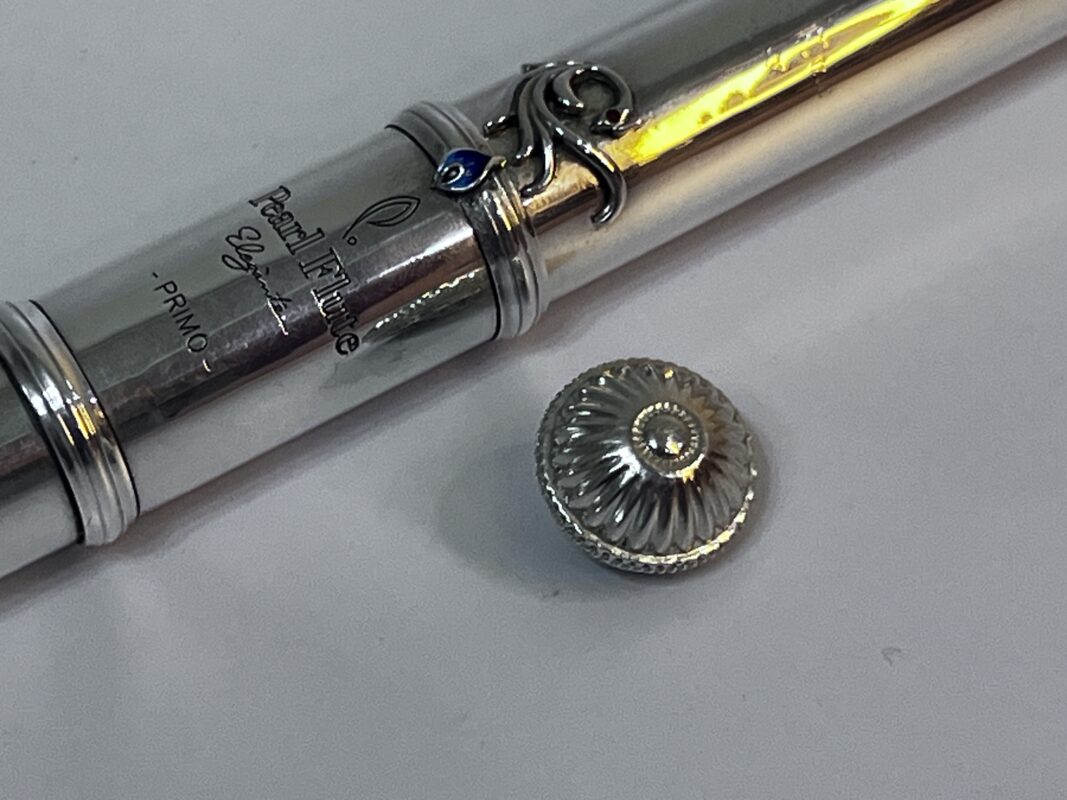 這把日本手工 Pearl 長笛,有獨特立體花紋,一眼就認出是 黃文生老師的作品,演奏起來,就是Pearl 手工笛的感受,吹笛手自己共有兩把 Pearl 995 與 Pearl 975 都是很早期的手工訂製作品。