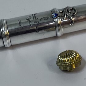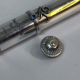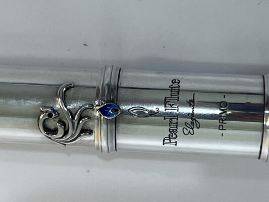 這把日本手工 Pearl 長笛,有獨特立體花紋,一眼就認出是 黃文生老師的作品,演奏起來,就是Pearl 手工笛的感受,吹笛手自己共有兩把 Pearl 995 與 Pearl 975 都是很早期的手工訂製作品。
